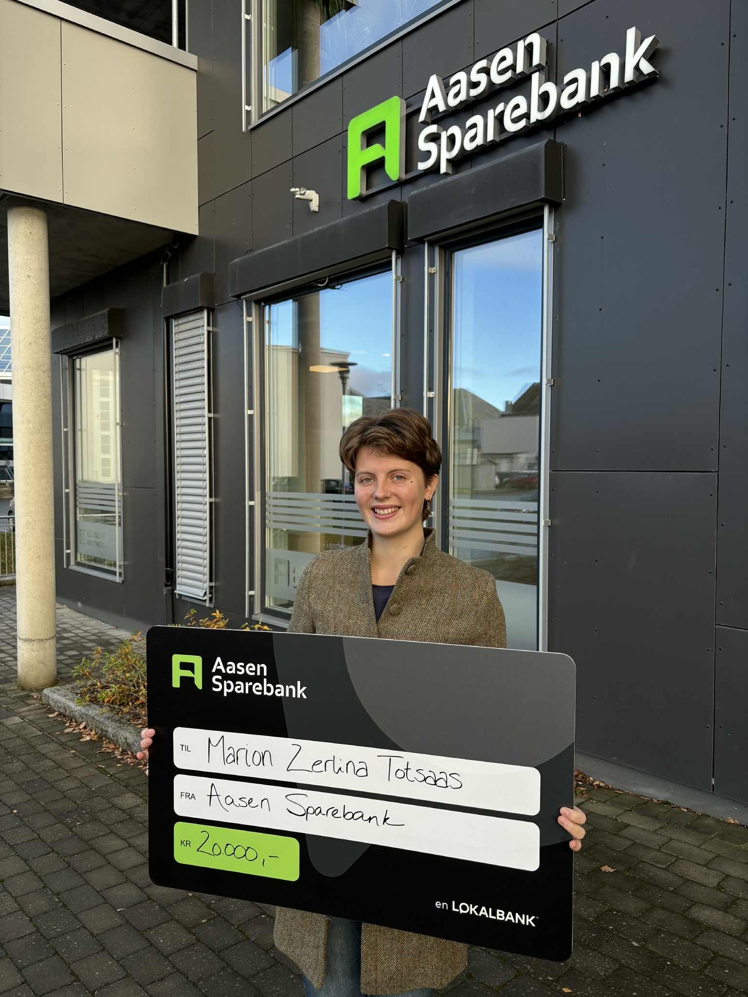 I år går stipendet på 20.000 kroner til en særdeles lovende musiker: Marion Zerline Totsaas. Marion er født og oppvokst på Inderøy, og har i flere år utmerket seg som et stort musikalsk talent. Nå har hun tatt steget videre og studerer klassisk sang i Canada, og kunne derfor ikke være til stede under årets Drømmeaften. Likevel ønsket vi i Aasen Sparebank å hedre henne og hennes innsats på forhånd, og overrekkelsen av stipendet ble gjort før arrangementet.